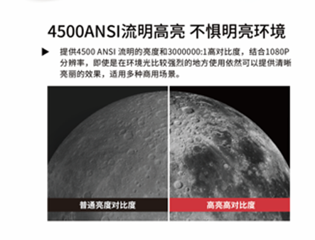 在亮度方面,lsd400hd-st提供高达4500 ansi流明,即使在强光环境下也能投射出清晰锐利的画面,满足会议室、教室、展厅等多种使用场景。其3000000:1高对比度结合1080p全高清分辨率,确保文字锐利、图像细节丰富,色彩表现自然真实。