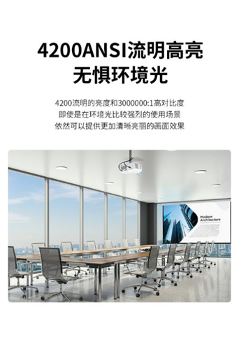 lsd400w搭载激光光源,亮度高达4200 ansi流明,对比度高达3000000:1,结合wxga(1280×800)分辨率,即使在强光环境下也能投射出清晰锐利的画面。无论是会议室的白天演示,还是教室中的多媒体教学,lsd400w都能确保内容清晰可见,文字锐利,图像细节丰富。