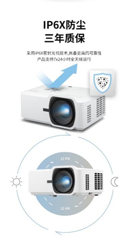 该产品还采用ip6x等级密封光机设计,有效防止灰尘侵入,保障光学系统长期稳定运行。支持7×24小时不间断工作,即使在高频使用的教育机构或企业会议室中,也能保持画质如初,确保关键演示任务顺利完成。无论是日常教学,还是会议演示,lsd400w都能提供持久可靠的视觉输出。